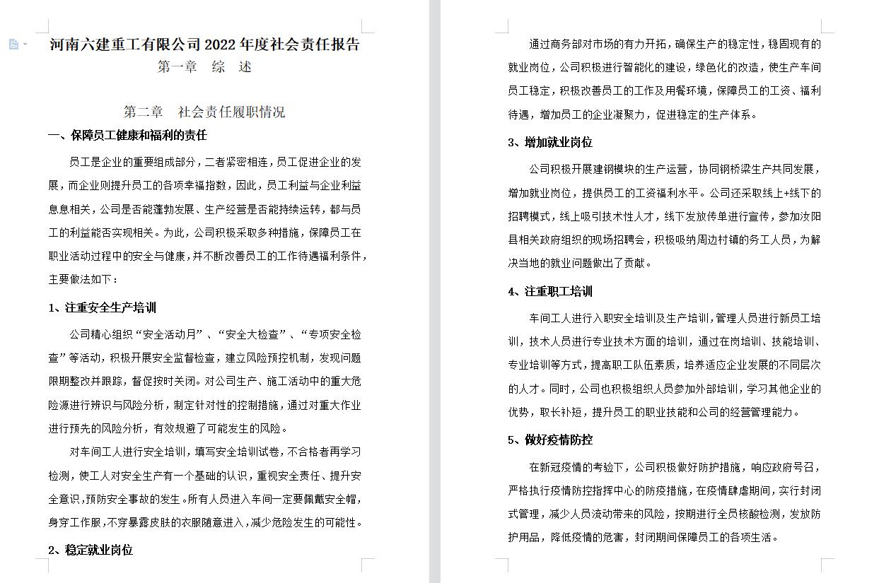 河南六建重工有限公司2022年度社會(huì)責(zé)任報(bào)告
